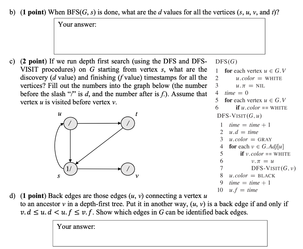 Solved Question 2 (7+1 points) Elementary graph algorithms.